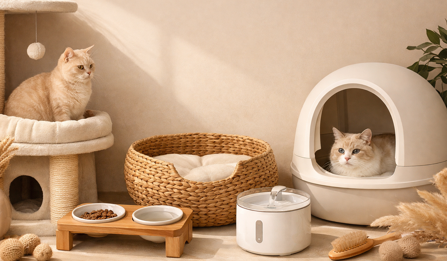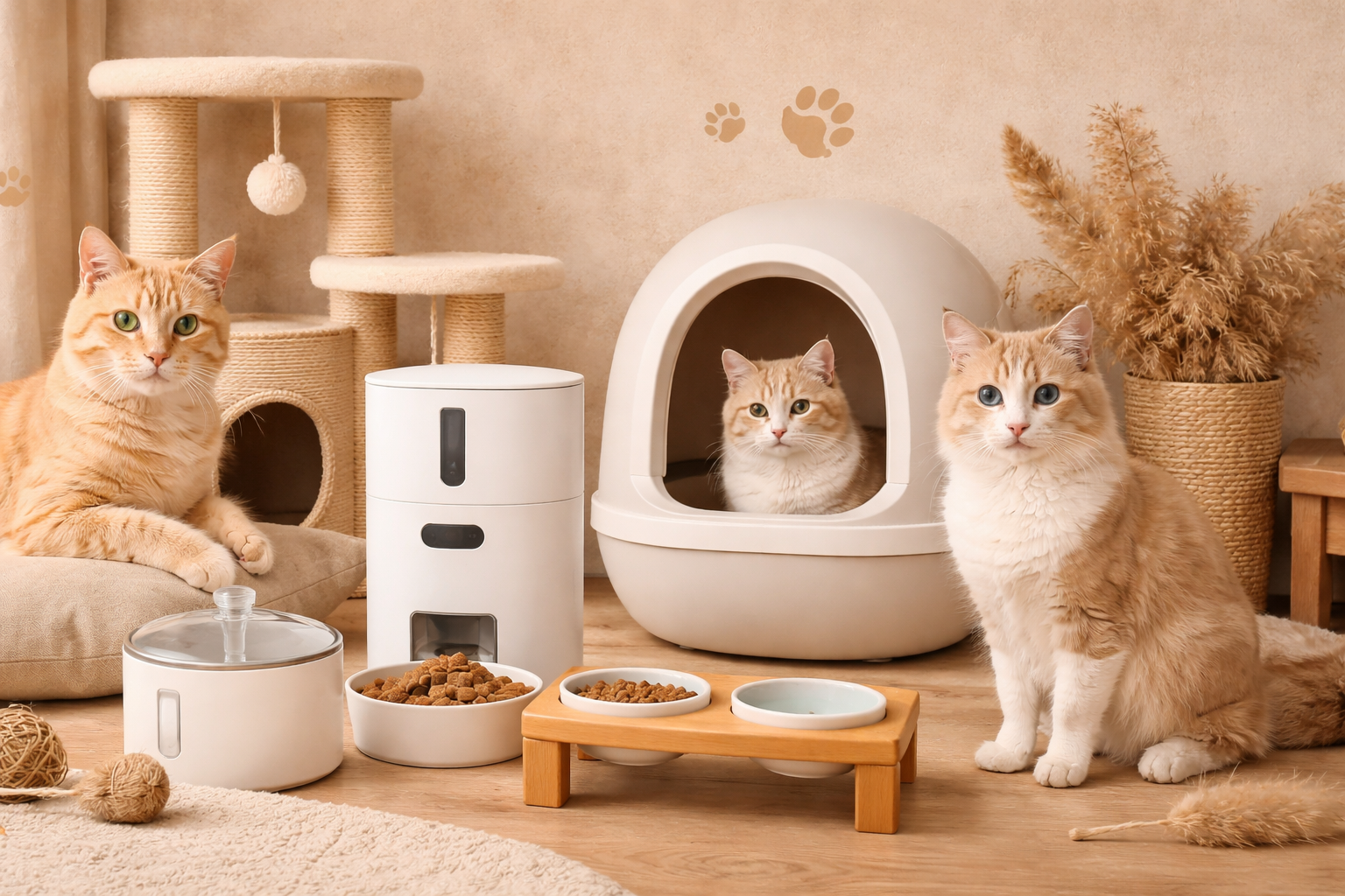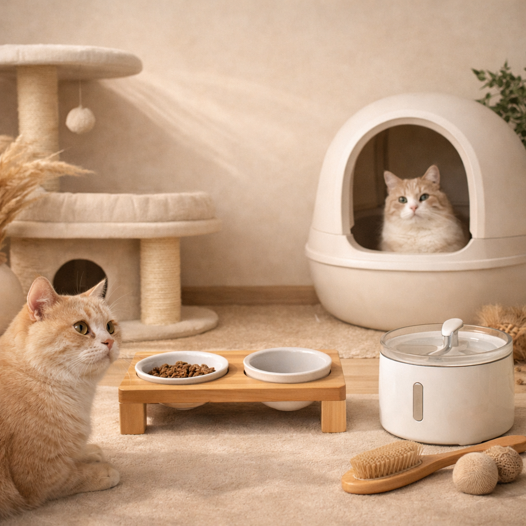 Un arbre à chat devient un espace où il peut grimper, observer et se reposer, tandis qu’une litière autonettoyante permet de maintenir un environnement propre plus facilement.